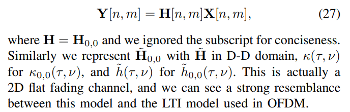 Remarks: The above discussions hold for both discrete and continuous D-D profiles. For discrete D-D channel model, these discussions hold even when the Doppler shifts and delays of different paths are not exactly on the D-D grids in general.